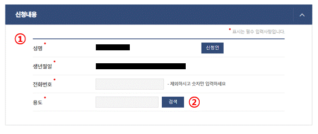 ① 신청인의 기본정보를 입력