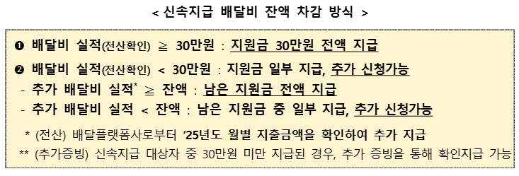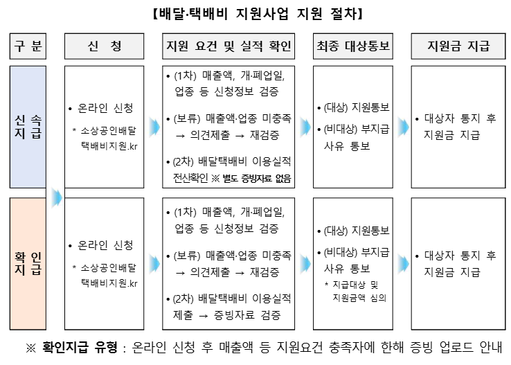 소상공인 배달·택배비 지원은 신속 지급과 확인 지급 두 가지 방식으로 나뉘어 진행됩니다.