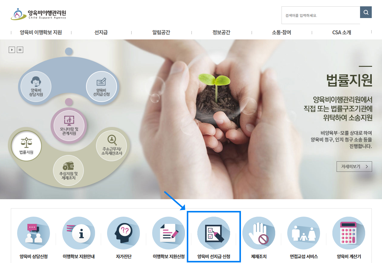 홈 >선지급>지원신청>양육비 선지급제 지원신청
