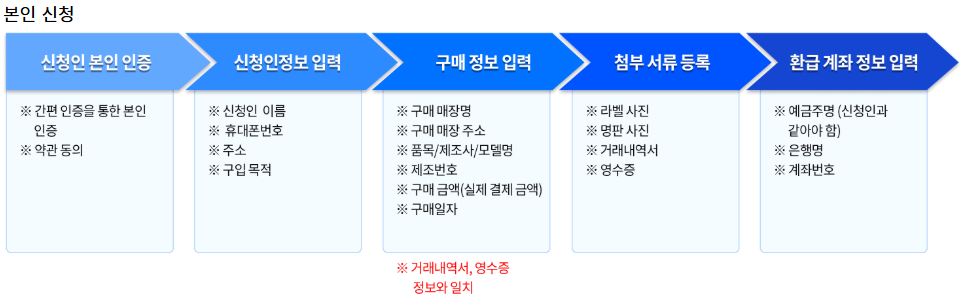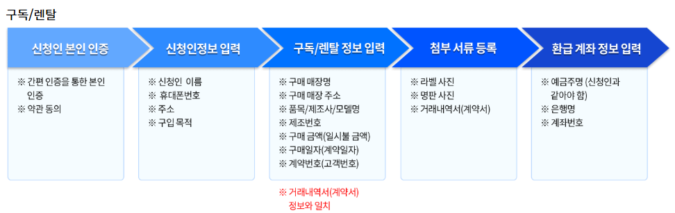환급 절차 : 제품 구매 → 환급 신청 → 서류 검토 → 환급금 지급