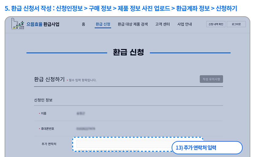 ⑤ 환급 신청서 작성