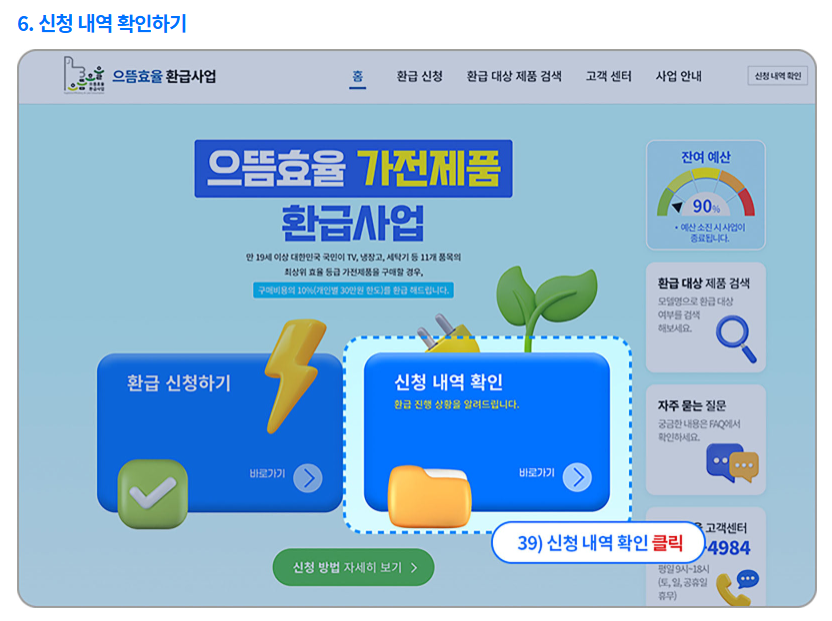 으뜸효율 가전 환급 신청 시 다음 절차대로 진행해주세요.