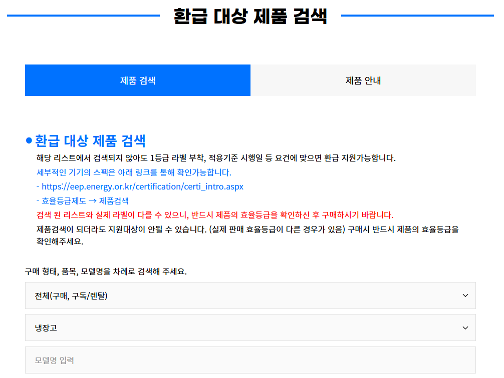 으뜸효율가전제품 환급사업에 참여하시려면, 구매 전 반드시 환급 대상 여부를 확인하고, 구매 후 60일 이내 신청하셔야 합니다.