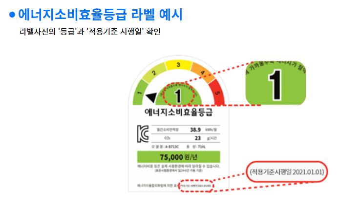 ③ 에너지효율등급 라벨에서 등급 및 적용기준 시행일 확인