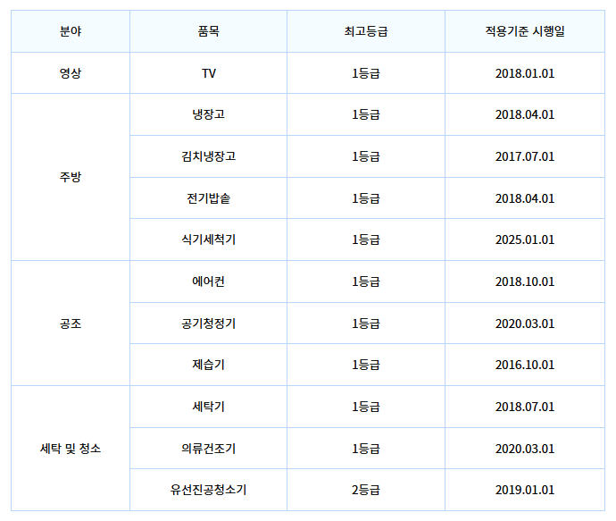 효율등급제도에서 관리하는 11개 가전의 최상위 등급 제품이 대상입니다.