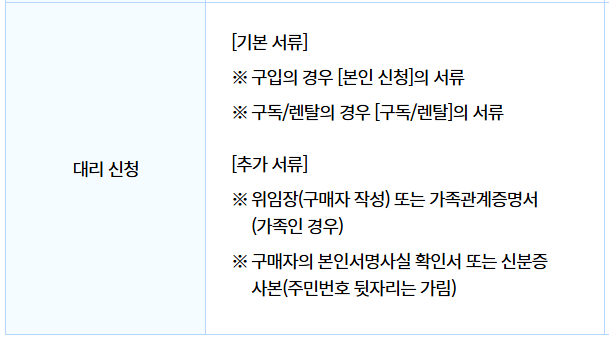 본인 신청, 구독/렌탈, 대리신청