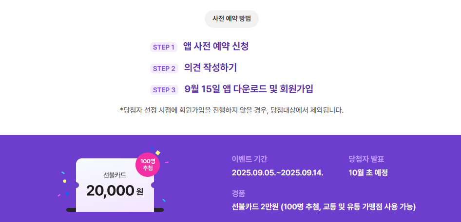 혜택: 이벤트 참여자 중 추첨 100명에게 2만 원권 교통카드 증정
