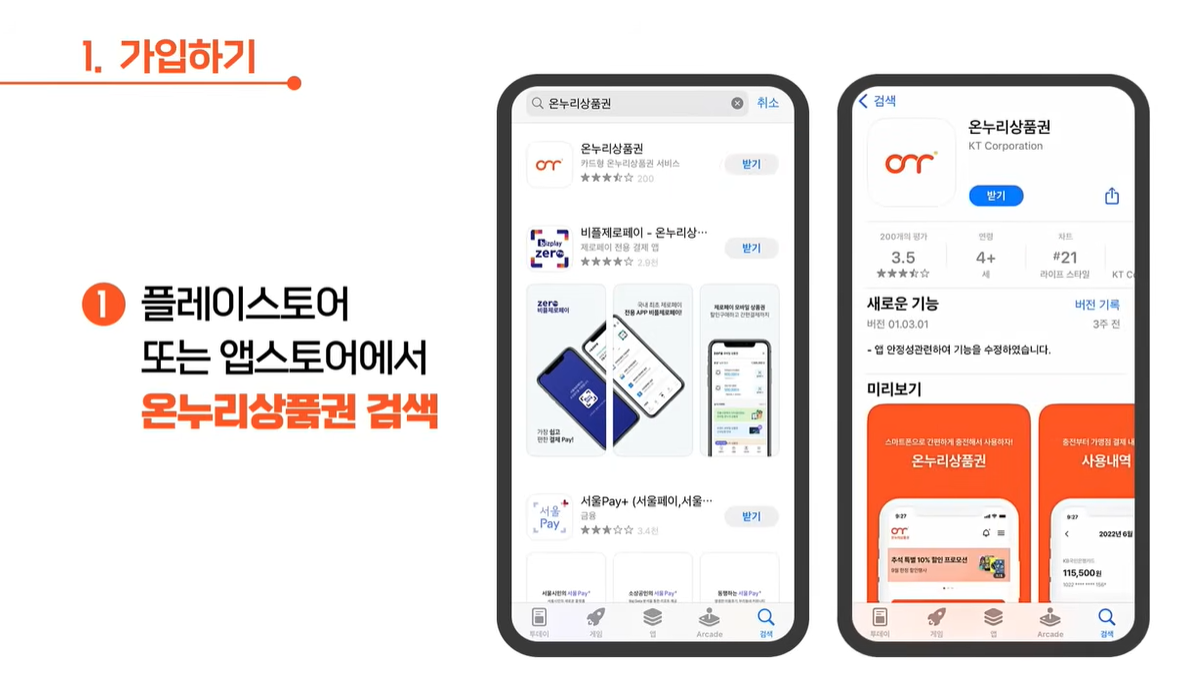 본인명의 휴대폰에서 온누리상품권 앱을 깔고, 회원가입을 합니다.