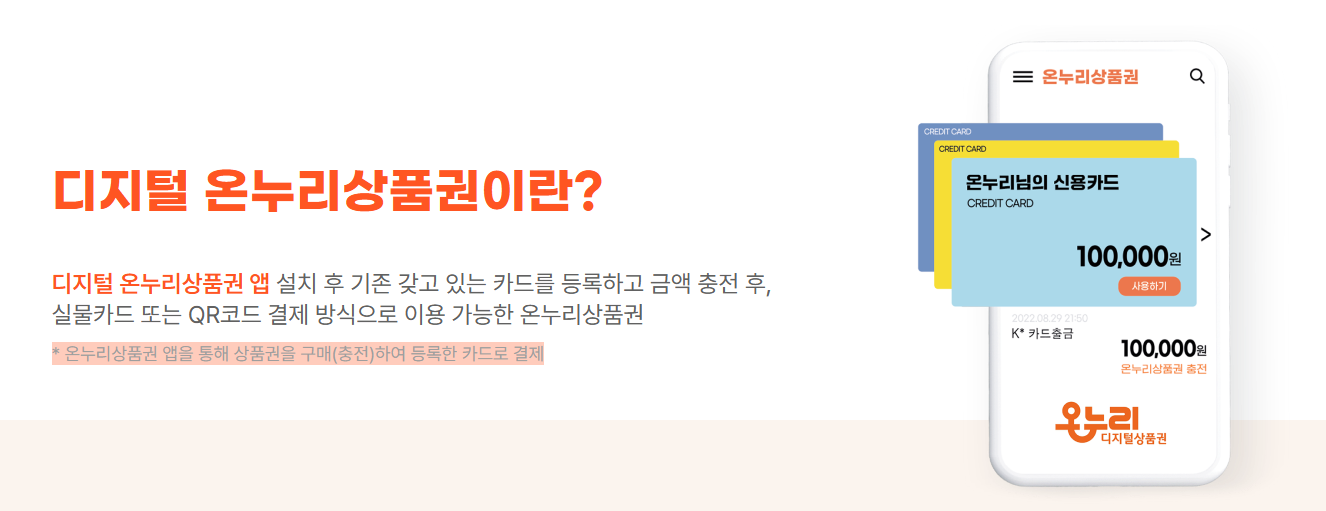 계좌를 통해 상품권 충전이 가능하고, 충전한 잔액 내에서 앱 또는 등록한 결제용 카드로 전국 온누리상품권 온/오프라인 가맹점에서 자유롭게 결제할 수 있으며, 결제내역을 확인할 수 있어