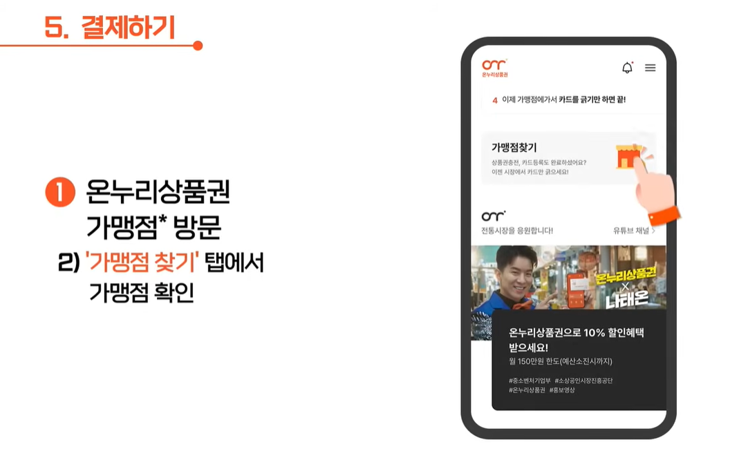 * 온누리상품권 앱을 통해 상품권을 구매(충전)하여 등록한 카드로 결제
