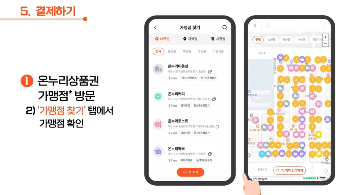 온누리상품권 가맹점 방문 후 어플에 등록된 카드로 결제합니다.