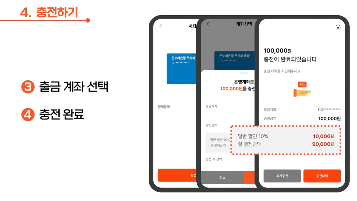 ㆍ충전 시 10% 할인 혜택 + 카드 사용 실적(적립) 반영