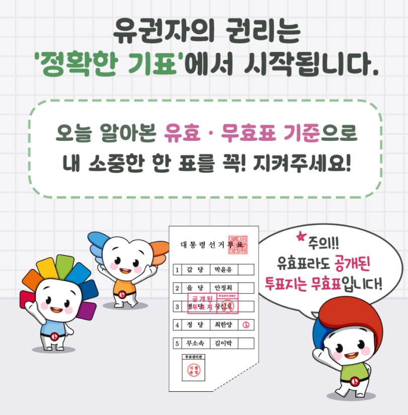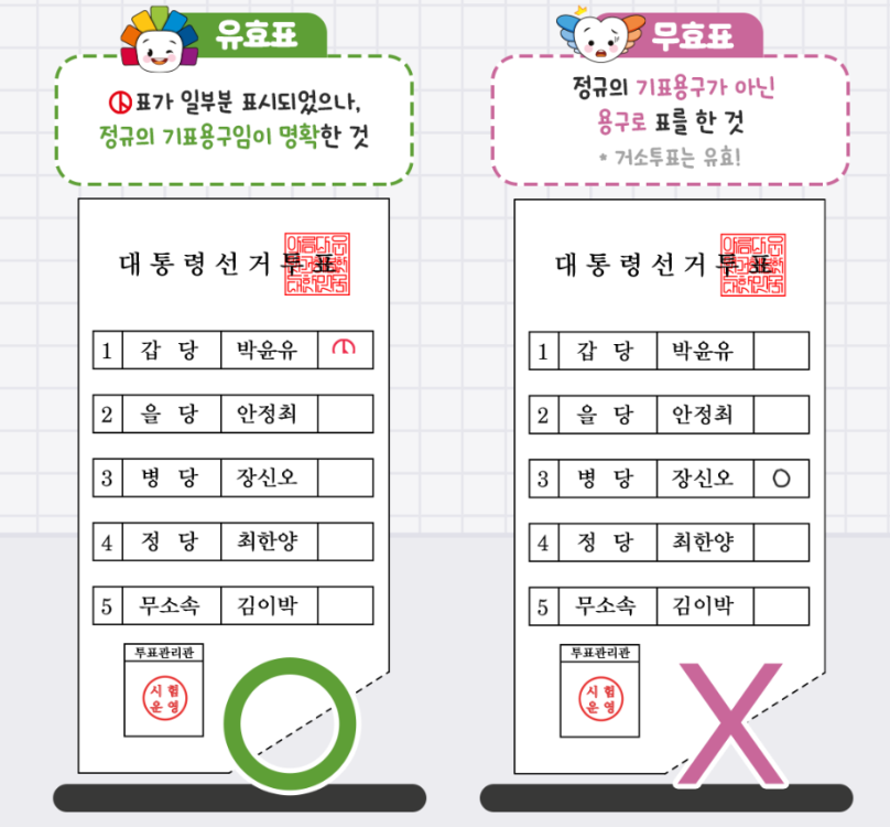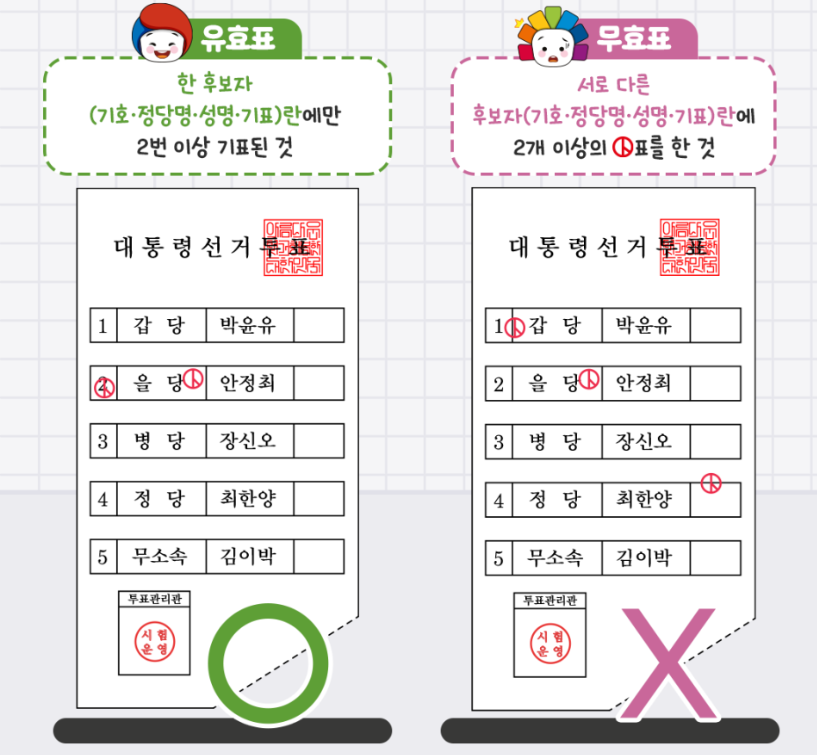 ㆍ투표용지에 기표용구를 한 번만 찍어야 합니다.