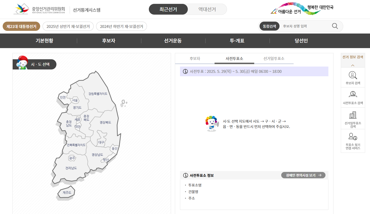 이 페이지는 중앙선거관리위원회 제21대 대통령선거 특집 홈페이지 입니다
