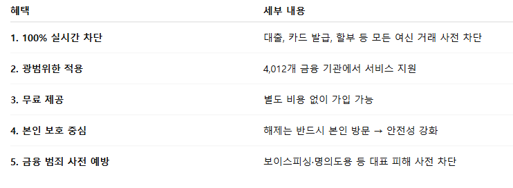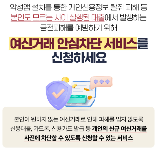 특히 신규 여신 거래 계획이 없다면, 지금 바로 신청해 금융 사기 시도로부터 내 자산을 안전하게 지키세요.