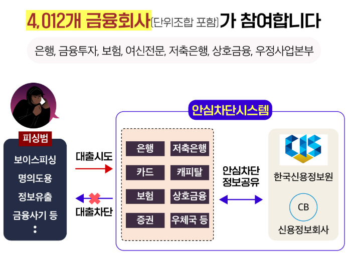 최근 보이스피싱ㆍ스미싱 등 디지털 금융 사기의 증가 속에서, 본인도 모르게 실행되는 여신거래나 카드 발급을 원천 차단할 수 있는 여신거래 안심차단 서비스에 대해서 알려드리겠습니다. 현재 전국 4,012개 금융 기관에서 서비스가 도입되어 모바일로도 간단하게 신청가능하니, 지금까지 모르셨다면 신청하시고 내 자산을 안전하게 지키세요!