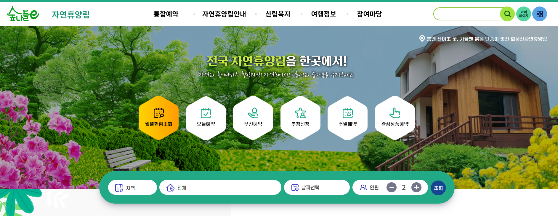 43개 국립자연휴양림 (우선예약 대상 객실은 추첨 제외)