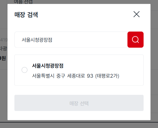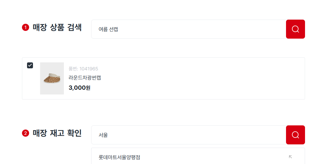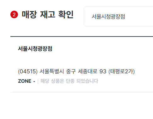 ③ 매장 재고 확인에 매장명 또는 지역 입력
