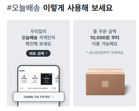 1. 배송비 절약 : 배송비 부담없이 당일 필요한 상품을 받아보세요!