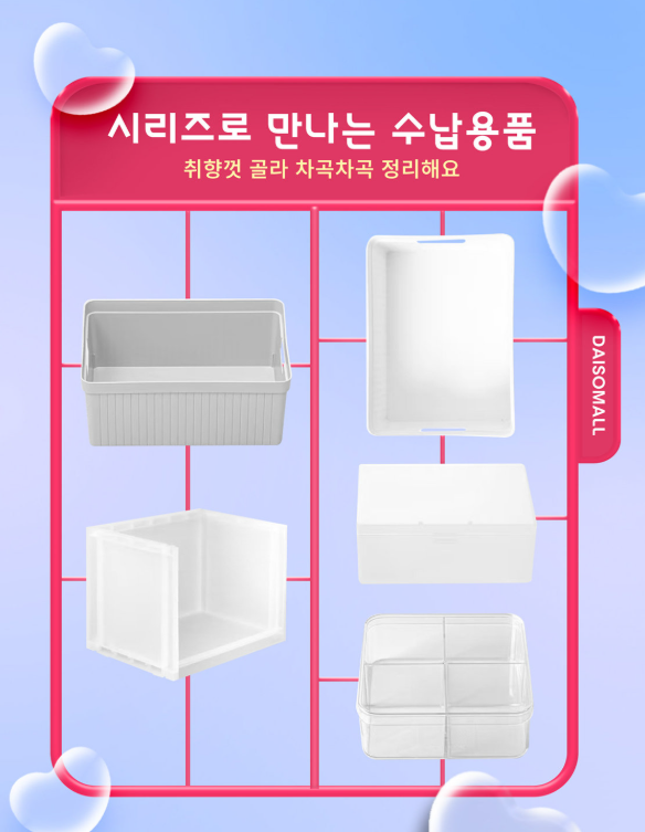 오프라인의 장점은 그대로, 온라인만의 혜택까지 더해져 이제는 클릭 한 번으로 다이소의 모든 제품을 만나볼 수 있습니다.