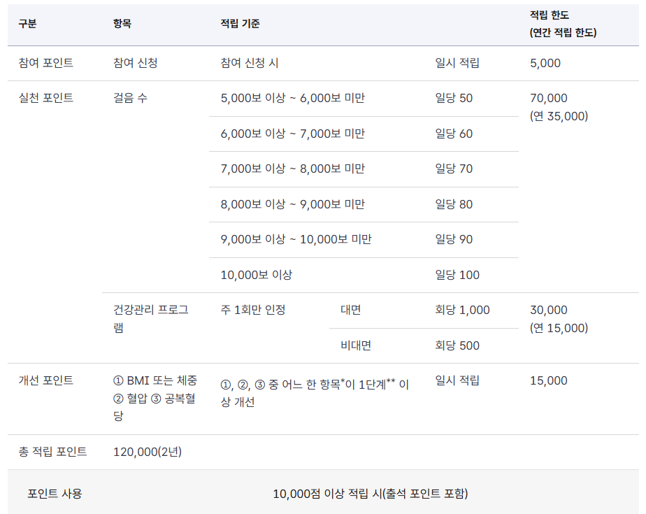 이 제도는 건강검진 결과 비만, 고혈압, 고혈당 등 위험요인이 있는 국민에게 포인트 형태의 인센티브를 지급하여, 꾸준한 건강관리 습관을 유도합니다.