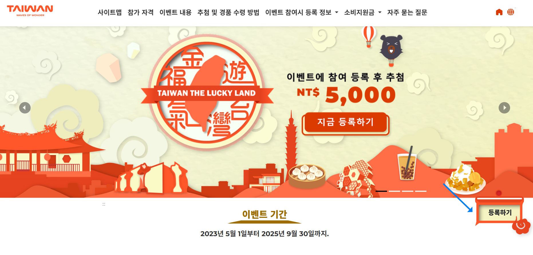대만 럭키드로우 이벤트 신청은 공식 홈페이지에서 하실 수 있습니다.